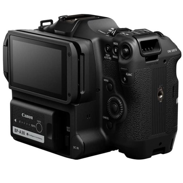 The camera features a Super 35 sensor with DGO (Dual Gain Output) as in the C300 Mark III. It can record up to 4K 120p 10-bit 4:2:2 with no crop, or 2K 180p. There is no raw recording, but there is Canon Log 2/3 and HLG available.