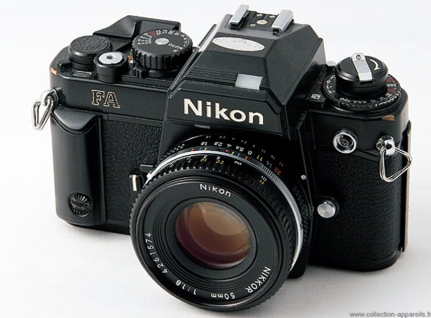 4) Nikon FA: The most sophisticated classic compact Nikon SLRs, the Nikon FA provides extra electronics and functions at the cost of a chunkier model. However, its extra weight afforded users the first multi-segmented exposure light meter in history. The most advanced manual-focus Nikon camera designed, the FA makes it a solid pick for beginners. $300-600.