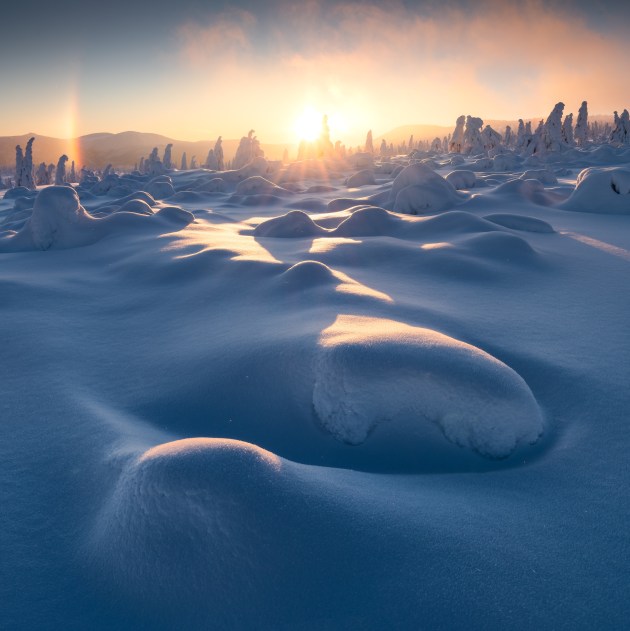 Luis Vilarino, Winner, Grand Landscape. The wind accumulated the snow at the foot of the gigantic blocks of ice based on the shore. It stopped snowing, but the wind kept blowing hard, lifting and depositing volcanic sand on the snow, shading the relief and textures as a charcoal artist would have done.David Shaw, Winner, Intimate Landscape. This type of woodland is quite tricky to photograph as it is so busy, and generally needs mist or thick fog to do it justice. For this particular trip I didn't have those conditions and decided to scout the area rather than focus on the photography. However, just as I was about to start the long trek back to the car, the sun came out and lit up this scene, leaving me scrambling to get 'something' before it disappared again. Chaotic by nature chaotic by capture!Ilan Shacham, Winner, Abstract Landscape. The Dead sea is a lake about 10 times more saline than the ocean. I am always fascinated by all the different types of salt formations, that have been created by various crystallization conditions. In this photo we can sea "pearls" of salt, on a hardened bed of salt, with ridges of salt running randomly through the scene, all this side lit by the early morning sun.Lizzie Shepherd, Winner, Seascapes. Harris is perhaps best known for its pristine, sandy beaches, but I am always drawn to its extraordinary rocky shoreline, made up of Lewisian gneiss formed millions of years ago. The challenge is to marry that complex and beautiful foreground with the wonderful backdrop of the Harris Hills in the distance. This is the closest I've come yet, but it's work in progress!Spencer Cox, Winner, Rocks and Geology. The enigmatic patterns of these marble caves struck me as telling a story of creation: growing trees, ancient mountains, swirling galaxies. After taking this photo, I learned that that the marble in this scene was only saved from mining because it is considered "low quality." I wonder, then, how many other remarkable scenes have vanished in service of our countertops?Vojtech Schmidt, Winner, Frozen Worlds. During a winter expedition in the snowy expanses of Finnish Lapland, I was granted a fleeting encounter. With my camera ready, I managed to quietly capture a glimpse before the willow grouse disappeared into the white silence.