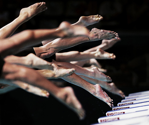 'Take Off!' Amaury Leveaux of France dives off the blocks at the start of the Men's 4x100m Freestyle relay on day nine of the 15th FINA World Championships at Palau Sant Jordi on July 28, 2013 in Barcelona, Spain. Adam Pretty, Shortlist 2014 Sony World Photography Awards (Sport, Professional Category).