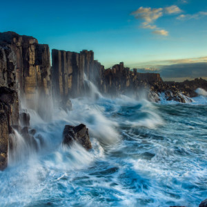The more traditional composition of Haworth’s coastal seascape still had an ethereal, spooky feel to it (aided by multiple blended exposures), and the surging power of the spray appearing over the rocky precipice from above the camera position emphasises the sometimes frightening nature of the ocean.