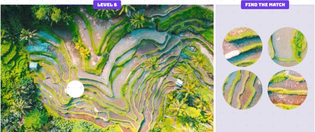 Players are shown a series of 10 photographs each with a part of the image missing. They're then asked to select the puzzle piece which completes the photo within the time limit.