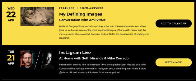 As well as making their workshops free throughout April, Nikon has introduced a new initiative called “Creators Hour” that involves a series of live events accessible anywhere in the world.