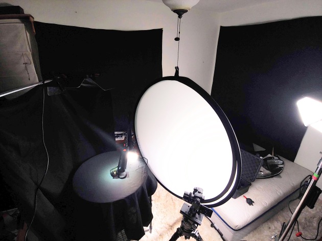 His images of his two Leica lenses were shot with a black sheet for a background, two Aputure LS1 daylight LED panels with a pop-out diffuser to smooth out the lens reflection, a high powered flashlight for the hard edge, an Aputure AL-MX pocket LED, and a tabletop desk lamp with articulating arm.