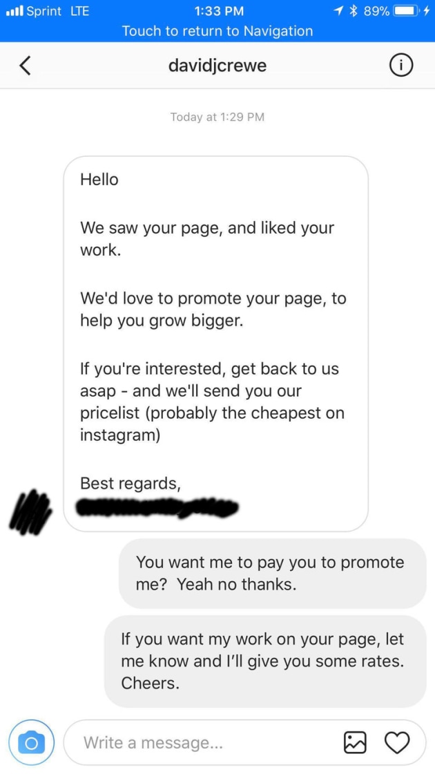 "It's a terrible way to grow a brand/business and following, but, it does beg the question if there are enough people paying, and enough people actually gaining followers from it to make it commercially viable and profitable?"