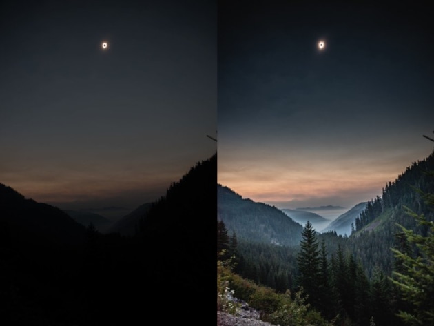 Dan Plucinski captured a photo of the solar eclipse yesterday, and shared the before-and-after comparison showing the straight-out-of-camera image (on left) compared to the edited one (on the right) with PetaPixel.