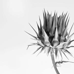 A black-and-white photo of a thistle against a plain white background has won australianphotography.com's May 'Still Life' competition. The image, by photographer Valeria Donnellan, was selected by this month's guest judge, acclaimed still life photographer Chuck Bradley.