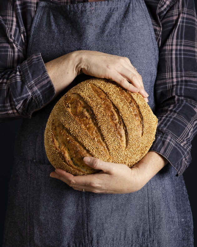 “The light was positioned above and to the right, skimming across the seeds, but far enough away to create a slower fall-off,” she explains. “I used a black backdrop and dark clothing and apron to ensure the bread was the undisputed hero. I then connected my camera to my phone and used the app’s delay to fire the shutter, tossing the phone into my apron pocket.”