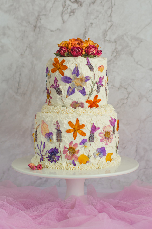 The project to create the flower cake was a joy to work on as it involved two things I love, cakes and flowers. The flowers were all picked from the garden and pressed over a few months and then the best part was bringing the creation all together.