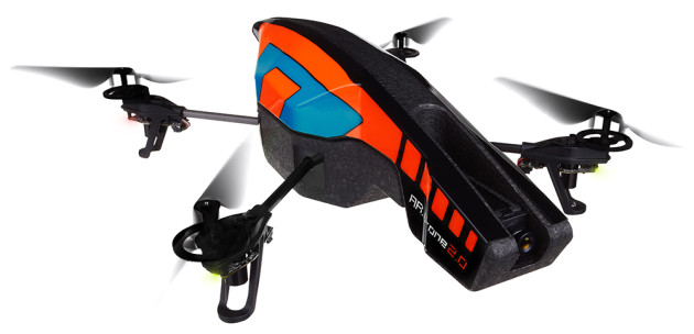 While the first generation Parrot AR Drone was a quadcopter solely controlled manually via iOS or android devices, it now offers a range of ‘autonomous’ features. Users can pre-program their desired destination and have the AR Drone fly there automatically. A home button will see the drone automatically find its way back to its origin. The AR Drone 2.0 features a three-axis accelerometer and three-axis gyroscope to aid stability, and two ultrasound altimeter sensors that measure distance to the ground. The downward-facing camera helps it hover motionless even in light wind conditions.