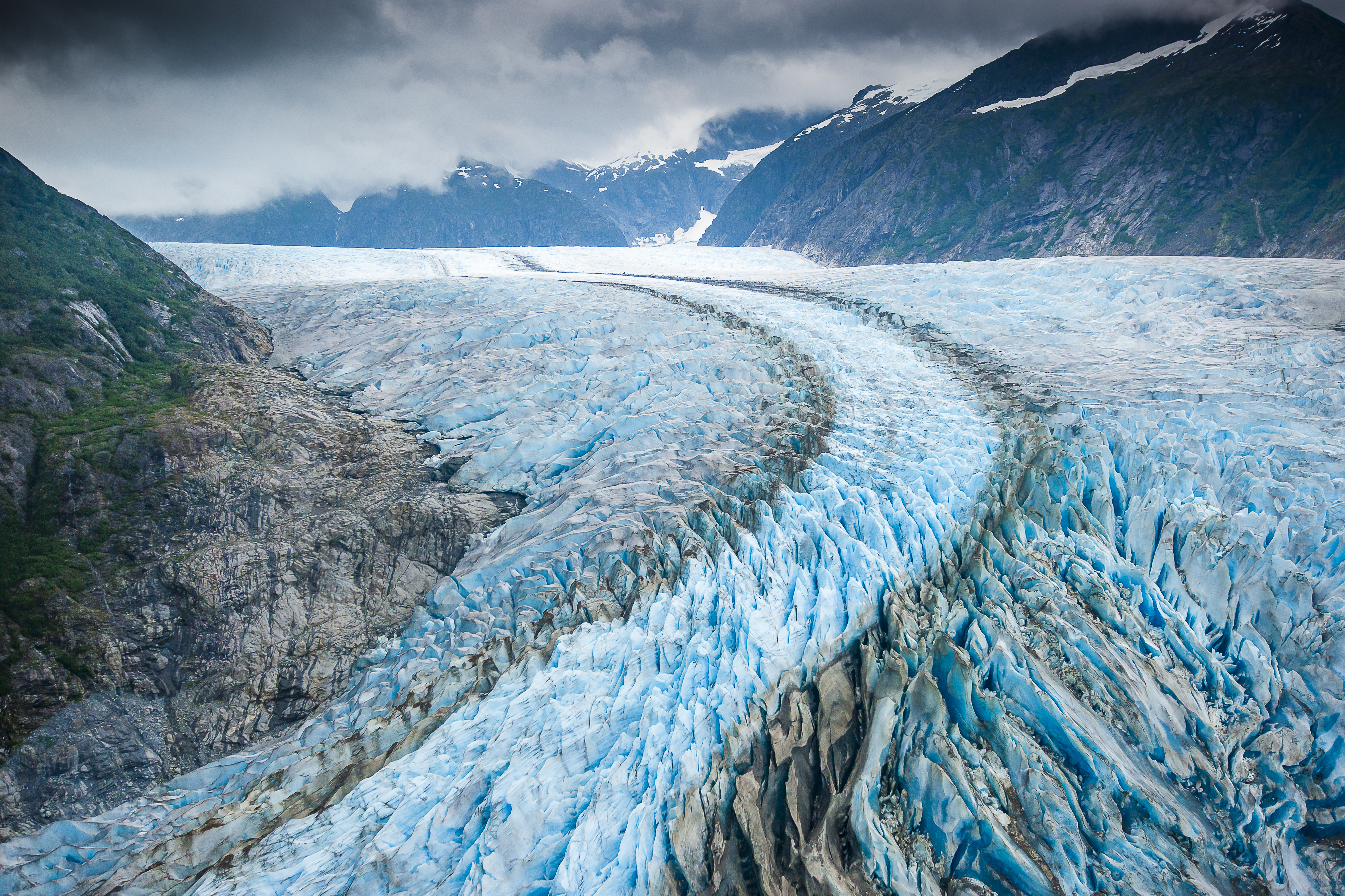 As well as your classic ‘zoomed in’ shots, it’s worth trying to include a few that tell a wider story, by including the wing tip or part of your helicopter in the frame. This helps convey scale and the vastness of a scene and can add to the wider series.