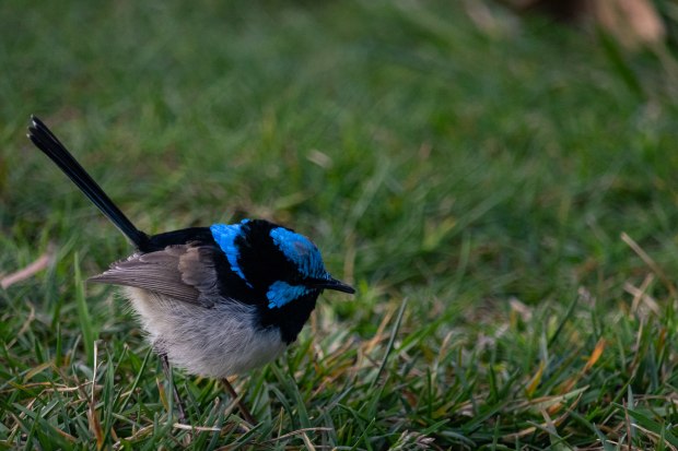 A Superb Fairywren on high alert, every muscle wired for flight. His electric-blue plumage flares against the grass, a burst of colour that rarely stays still. Blink and he’s gone, but I was able to capture him here.