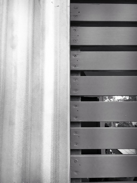 Colorbond steel meets wooden fence