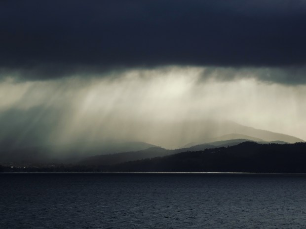 A picture looking across the Derwent River to Mount Wellington