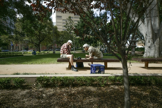 A small park offered space for a quiet game of chess in the middle of Sydney. These guys looked serious. They had a timer and were totally absorbed in the game.
