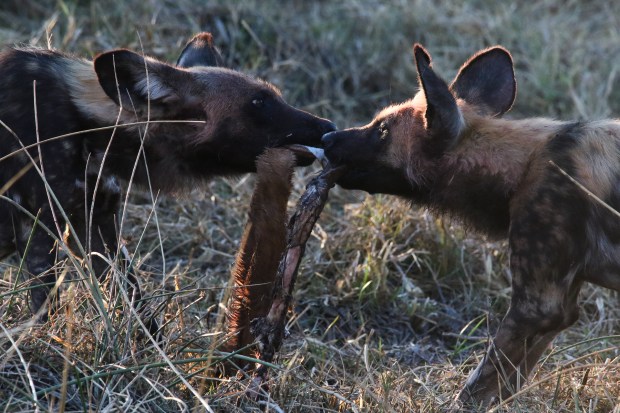 Early one morning, while on safari in Botswana, an impala ran past our campsite closely followed by an African wild dog. The hunt was on and the pack took off at a tremendous pace. We found them later once they had killed and watched them playing together before resting.