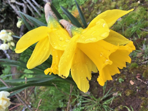 It has been a wet day in this last week of August. The spring bulbs were delightful to behold afterwards.