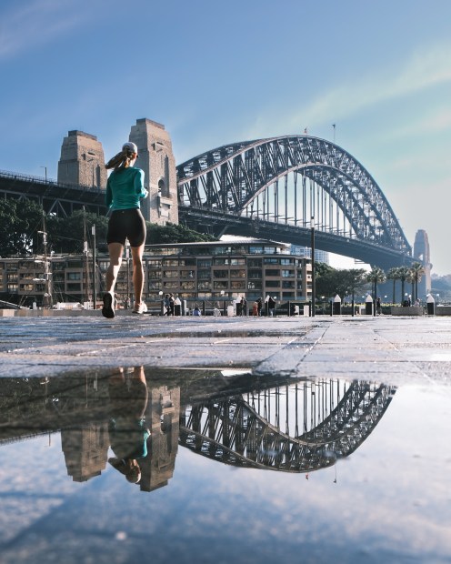This reflection photo of the harbour bridge was taken on an early sunday morning after some heavy rains the night before