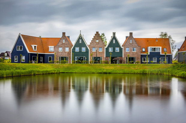Perfectly symmetrical holiday houses in Volendam, Netherlands.