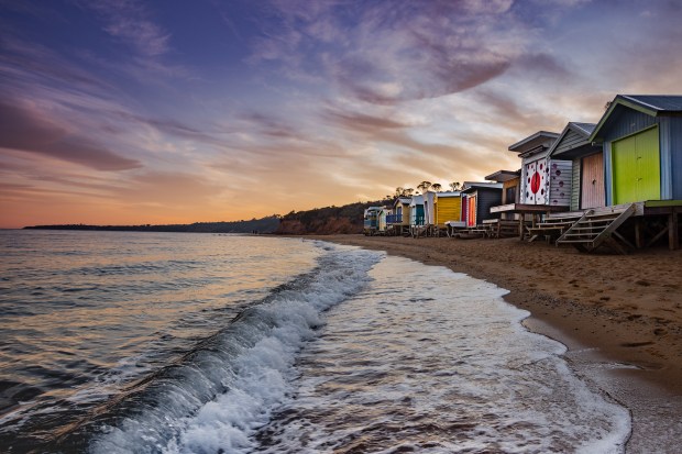 Canon 5D 1V, 21mm, f7.1 Iso100 1/125sec Mt Martha Beach Boxes, all wonky and lonely, waiting patiently for the warmth of summer and the people to return.