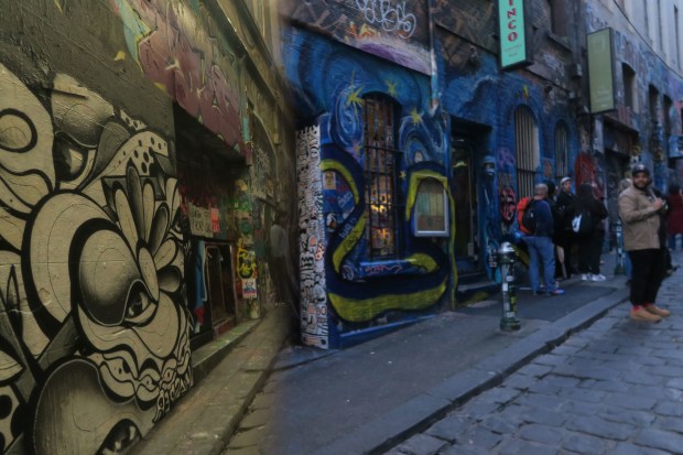 Deborah Hilton, An unusual angle as a result of merging two laneways with street art using an Omni Lens. (February theme: Unusual angles)