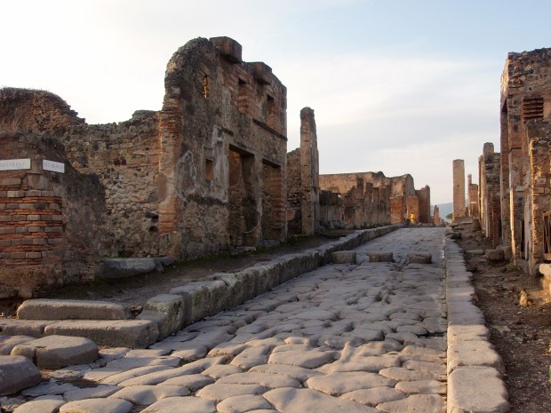 Taken just as the sun was beginning to set over a street of a street within Pompeii.