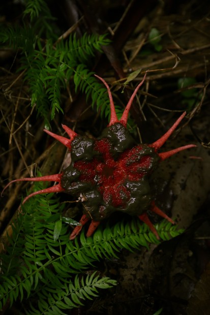 A glimpse of Australia's first described native fungus, Aseroe Rubra. It's name is derived from Ancient Greek: Ase is "disgust", Roe means "Juice" and from Latin Ruber of course means "Ruby". There's a lot to learn in a name, while this fungus is able to disgust with its foul scent the ruby colours and anemone shape are beautiful and eye catching on the forest floor. Keep an eye out next time you're out in Australia's forest.