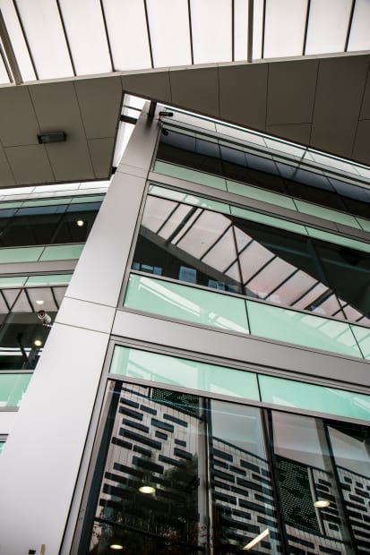 Angles and reflections of varying surfaces of a building.