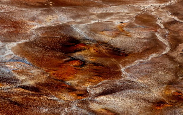 Abstract aerial view of Anna Creek Painted Hills in South Australia