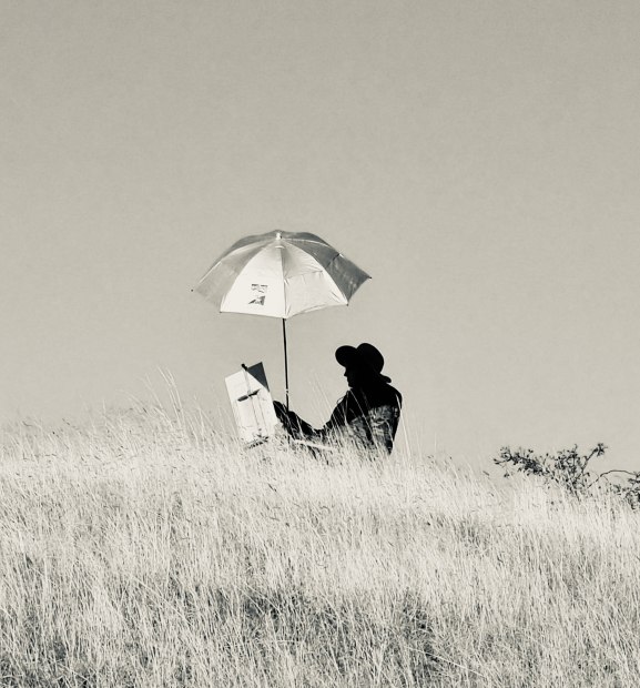 On a frosty morning I captured this lone artist perched on a hilltop on the road to Coronet Peak Queenstown New Zealand