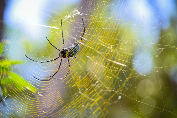This beautiful golden orb spider has spun a perfect web of geometrical design to capture its prey.