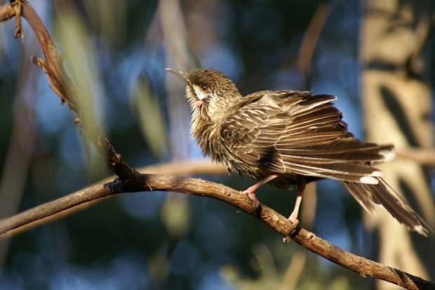 An Australian Wattle Bird after having a little dip in the local birdbath