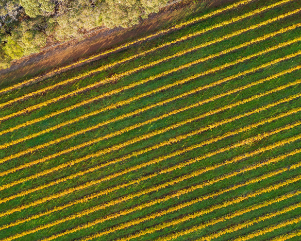 The autumn colour of the vineyards in South West of Western Australia near Margaret River.