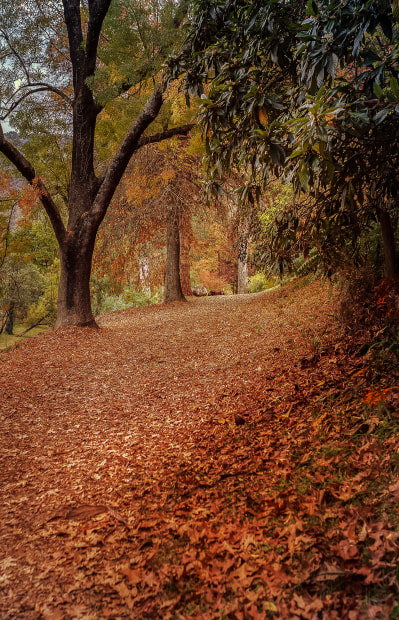 The walkway alongside the Ovens River in Bright carpeted in a beautiful array of colourful Autumn leaves. You can wander for miles here under the canopy of old but elegant deciduous trees.