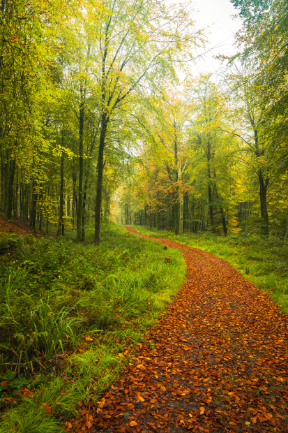 The beginnings of beautiful autumn colouring in a Dorset forest.