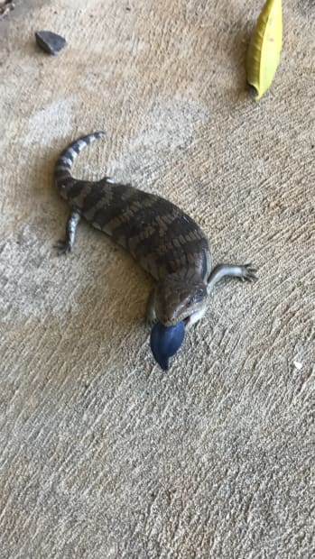 Took picture at the right time of a baby blue tongue lizard