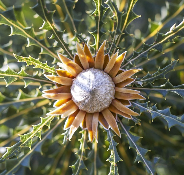 This tiny bud of the Banksia nobilis makes a dramatic statement in the sunlight.