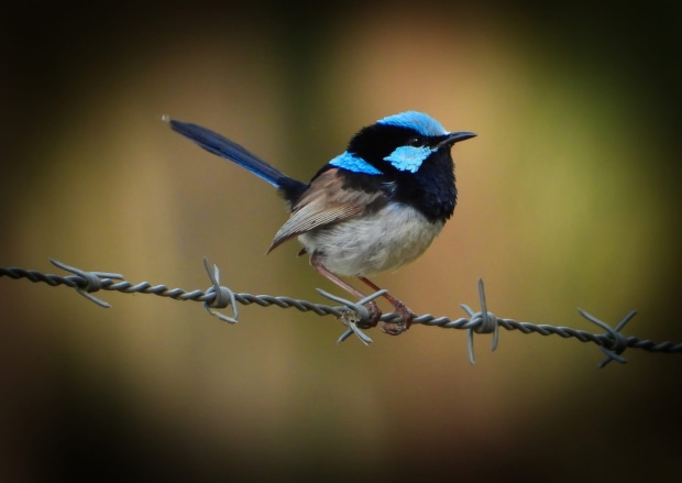 Blue Fairy Wren on barbed wire!