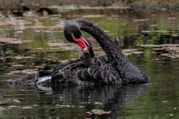 A swan enjoying its bath in Lake Wendouree, Victoria