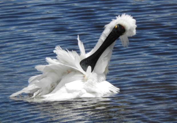spoonbill taking a bath