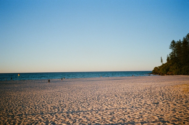 This 35mm film photograph captures the stillness of the beach at Tweed Heads. Thousands of footprints trace the sand, yet no one is present, highlighting a quiet solitude. The ocean stretches into the distance as a beautiful lonely space, a place of reflection and calm. Through this image I wanted to convey the traces we leave behind and the peaceful emptiness that follows, inviting the viewer to pause and feel the quiet rhythm of the shore and the fleeting presence of those who came before.