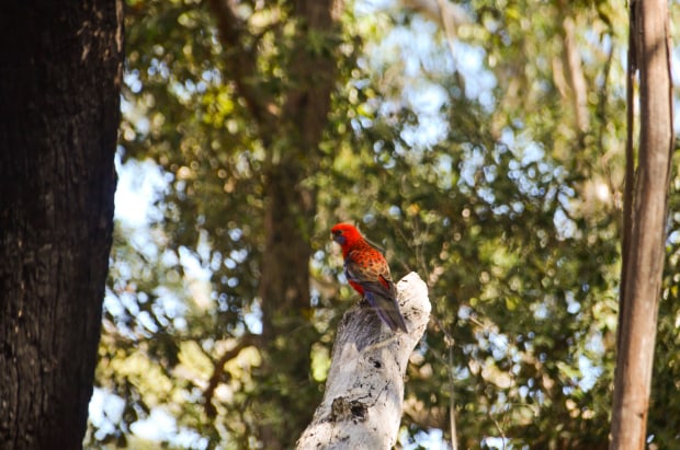 A Crimson Rosella Parrot captured sitting on a branch