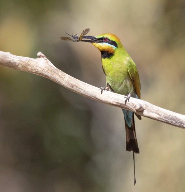 The little things that Bee-eaters are partial to are wasps, other flying insects and um... bees. The insect in the beak of this bird seems to be crying out. Don't blame it.