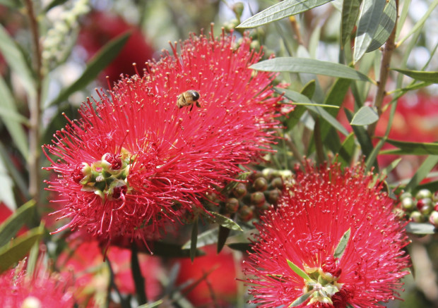 Billy Olney, Bee in Bottlebrush bloom (April Theme: Garden)