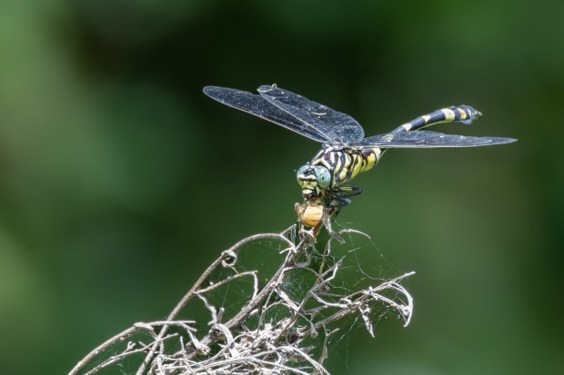 Spider's Bee snack taken by a an Australian Tiger Dragonfly