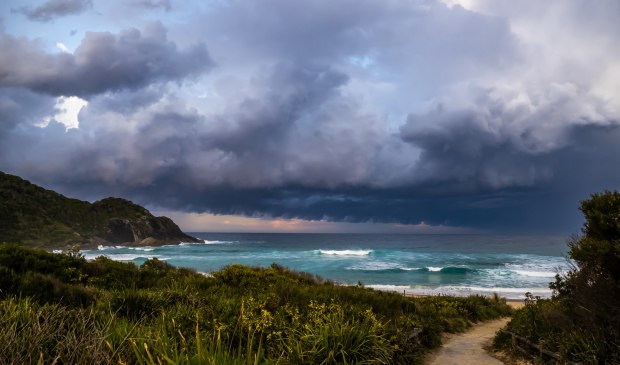 Heading past Boomerang Beach I stopped, hoping to be ahead of the front passing over out to sea, but my timing was off. It still looked impressive from behind.