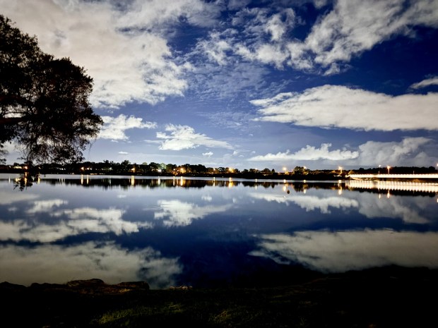 This picture is taken by the Mount Henry bridge, Swan river in Perth. It was absolutely breathtaking to see sky's reflection in still waters beneath full moon.
