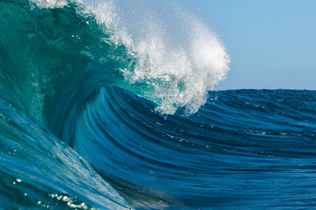 A wave, a split second from detonation on a shallow reef in Western Australia's south west,
