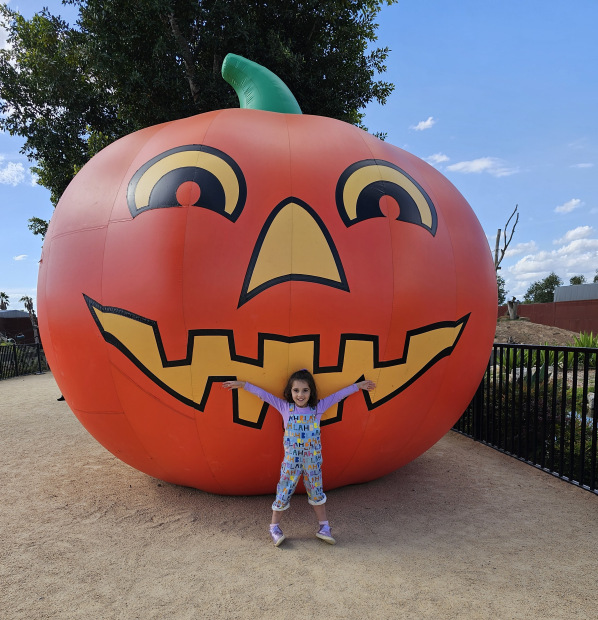 My Grand Daughter in front of a big Pumpkin