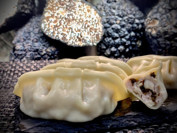 Dumplings are a traditional food of Asia. Black truffle dumplings must be a taste creatively. This photo was taken for a new taste food.